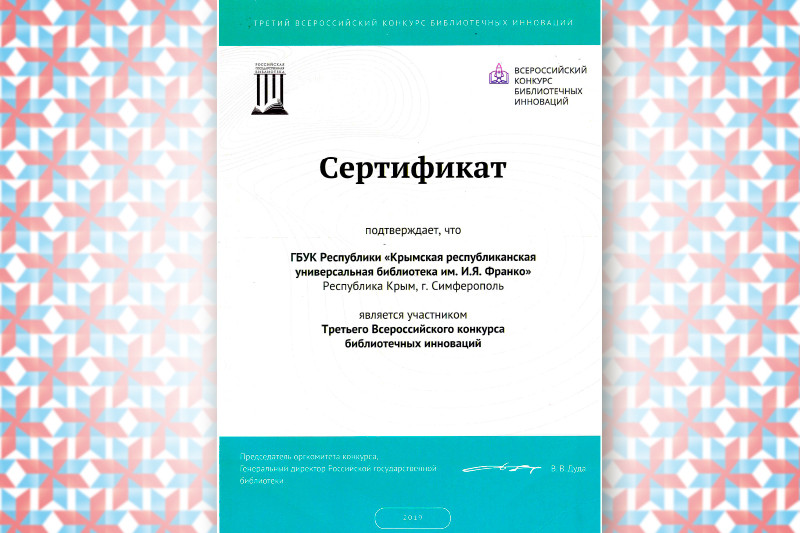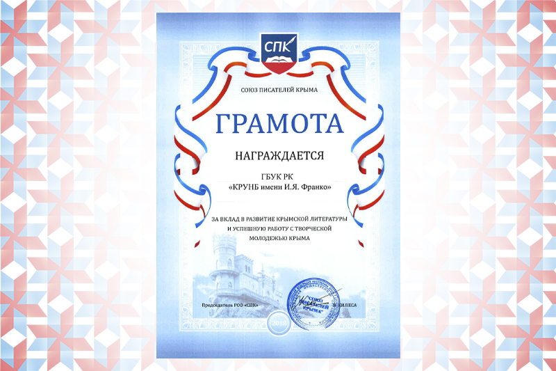 Благодарность от ЦРО Духовное управление Мусульман Республики Крым и города Симферополя за содействие в организации презентации книги «Бессмертные ваши имена»