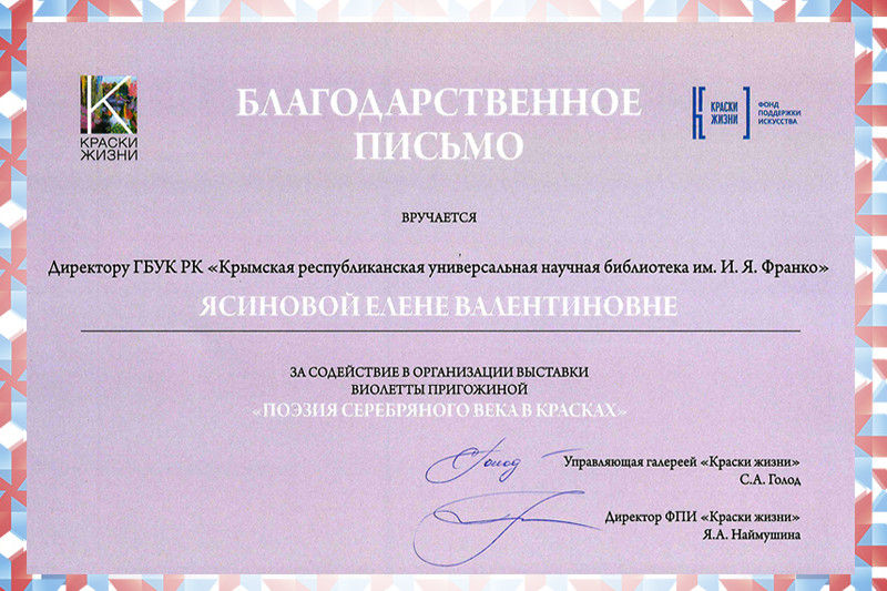 ![]() Государственное бюджетное учреждение культуры Республики Крым «Крымская республиканская универсальная научная библиотека им. И. Я. Франко» |