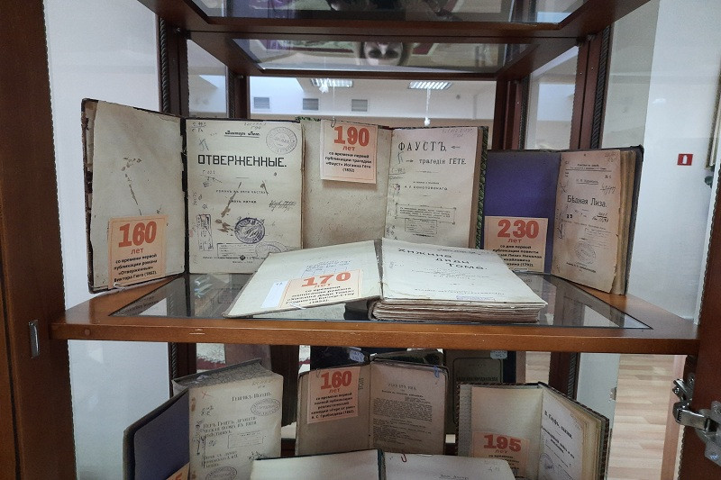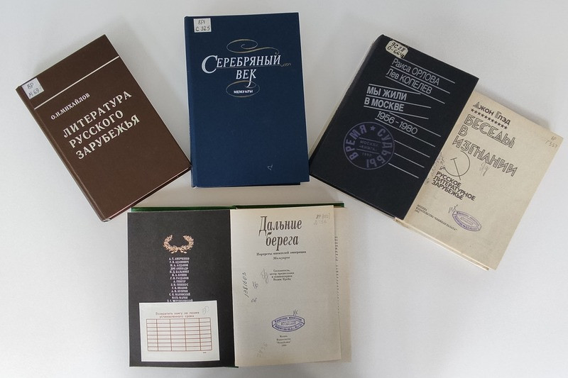 Дополнительные сведения: Издания латинского шрифта XVIII в. – 16 экз., в т.ч.: прижизненные издания произведений Жана-Жака Руссо – «Новая Элоиза или Письма двух влюбленных, живущих в маленьком селении у подножия Альп. Т. 2-4» (Париж, 1764), «Эмиль, или О воспитании. Т.1-3» (Амстердам, 1774) и «Произведения. Т. 1» Жана Батиста Луи Грессе (1765), «Продолжение универсальной истории мессира Ж.-Б. Боссюэ, епископа Мо: От начала войны 1688 г. до 1721 г. Т. 3» (Амстердам; Лейпциг, 1753), «Метаморфозы. Т. 1» Овидия, переведенные на французский язык, с примечаниями и историческими пояснениями аббата Банье (Амстердам-Лейпциг, 1764), «История гостеприимных рыцарей святого Иоанна Иерусалимского, называвшихся потом родосскими, а ныне мальтийскими рыцарями. Т 1-5», написанная аббатом Верто (Париж, 1778) и др. 1801–1830 гг. – издания латинского шрифта – 21 экз., в т.ч.: альбомы «Памятники античного искусства в музее Наполеона. Т. 1-2» с гравюрами Томаса Пироли, изданные братьями Ф. и П. Пиранези (Париж, 1804), «Собрание сочинений. Т. 3, 8-20» (Париж, издание Бриэра и Вальфердена, 1821) и «Мемуары, переписка и неизданные произведения. Т. 1-2» (Париж, издание Полена,1830) Дени Дидро, «Исторические и философские воспоминания о творчестве Дени Дидро» (Париж, издание Бриэра, 1821) Жака Андре Нежона. 1801–1830 гг. – издания кириллического шрифта – 2 экз.: Блаженного Феодорита, епископа Кирского толкование на Песнь песней (М., [1808]), Господа Нашего Иисуса Христа Новый Завет, на славянском и русском языке (СПб., 1822). 1801–1830 гг. – издания русского гражданского шрифта – 5 экз.: «Сочинения. Ч. 2» Г. Р. Державина [СПб., 1808], «Словарь древностей и новой поэзии. Ч. 2» Н. Остолопова (СПб., 1821), «О истинном христианстве. 6 книг с присовокуплением «райского вертограда» и других некоторых мелких сочинений сего писателя. Ч. 2-4» Иоанна Арндта (Москва, 1800-1801). Издания, вышедшие после 1830 г.: – первые и/или прижизненные издания произведений выдающихся авторов, в т. ч. книги А. А. Ахматовой, Э. Г. Багрицкого, В. Г. Белинского, А. Н. Бенуа, А. А. Блока, М. А. Булгакова, И. А. Бунина, М. А. Волошина, З. Н. Гиппиус, Дж. Голсуорси, М. Горького, И. Э. Грабаря, Н. С. Гумилева, Ч. Диккенса, С. А. Есенина, В. А. Жуковского, Э. Золя, Р. Киплинга, А. Конан-Дойля, В. Г. Короленко, Н. И. Манасеиной, С. Я. Маршака, В. В. Маяковского, Д. И. Менделеева, Д. С. Мережковского, М. Метерлинка, И. И. Мечникова, Н. А. Некрасова, В. И. Немировича-Данченко, Фр. Ницше, И. А. Орбели, А. П. Остроумовой-Лебедевой, Б. Л. Пастернака, В. С. Соловьева, Анри де Ренье, Ромена Роллана, И. М. Саркизова-Серазини, И. Северянина, И. Л. Сельвинского, А. А. Спендиарова, Р. Тагора, Л. Н. Толстого, И. С. Тургенева, Герберта Дж. Уэльса, А. А. Фадеева, А. Франса, В. Ф. Ходасевича, С. Цвейга, Ф. И. Шаляпина, С. В. Шервинского, Б. Шоу, Р. Штейнера, З. Фрейда, В. К. Церасского, А. Эйнштейна и др.; – издания, иллюстрированные и/или оформленные выдающимися художниками, в т. ч. книга «О трех рыцарях и рубахе» Жака де Безье (в пер. И. Эренбурга), рисунки и текст Ивана Лебедева (М., 1916), книга «Париж накануне войны» в монотипиях Е.С. Кругликовой (Птг., 1916), роман в стихах «В звездах» Ильи Эренбурга, обложка Диего Ривера ([Киев], 1919), сборник стихов Валентина Парнаха «Словодвиг» с рисунками Н. Гончаровой и М. Ларионова (Париж, 1920) и др.; – издания, аутентичные событиям и/или периодам большой исторической значимости: Первой мировой войне (1914-1918) – С.С. Кондурушкин «Вслед за войной. Авг. 1914 – март 1915» (Пт